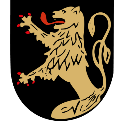 In Schwarz ein wachsender goldener, rotgezungter und –bewehrter Löwe.